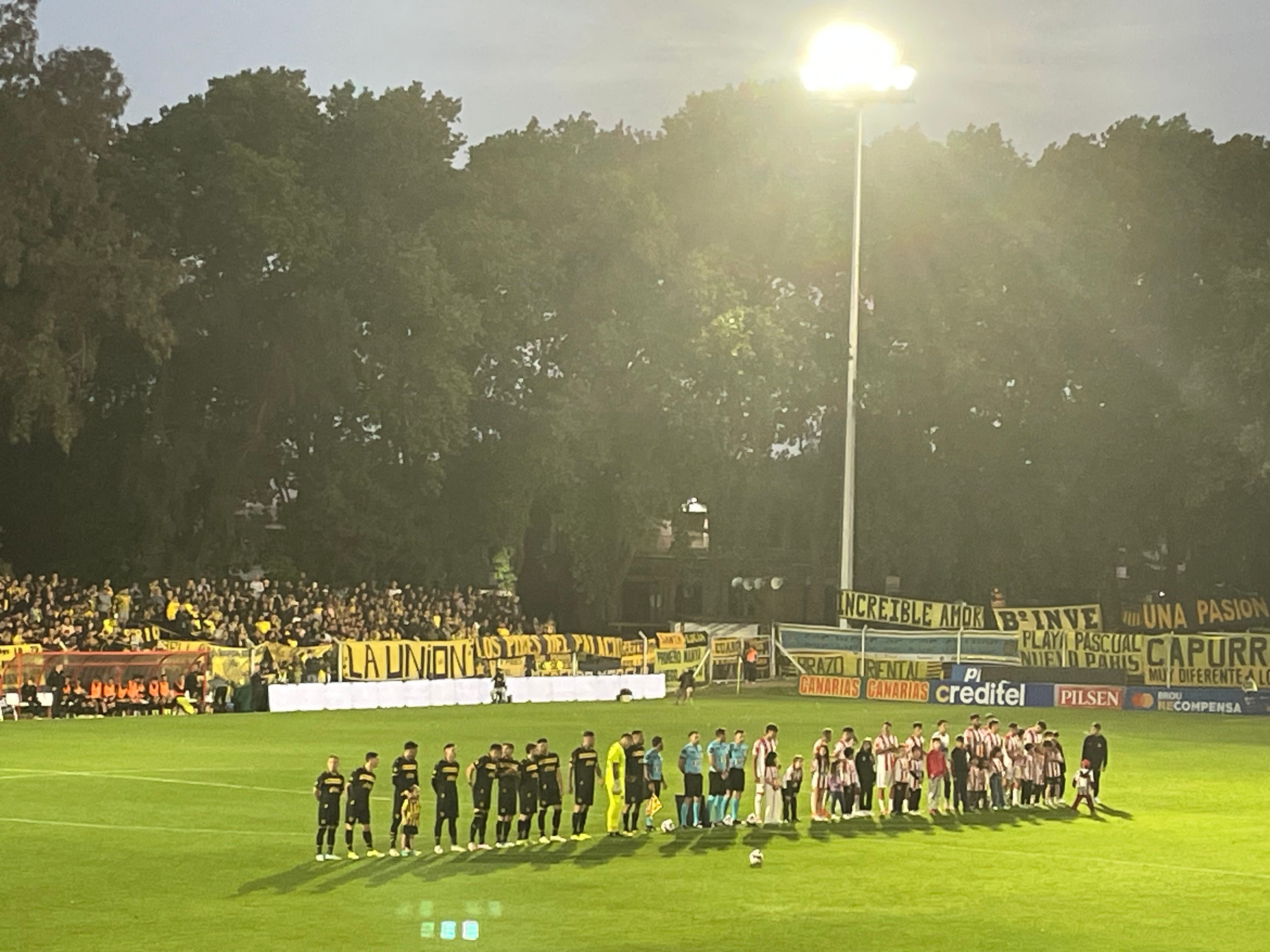 The Estadio Saroldi has the feel of an English county cricket ground. It’s in the leafy Prado park complex, where rivals Montevideo Wanderers and Bella Vista also have grounds. The Saroldi is enclosed within woodlands with a modest white pavilion and concrete benches painted red and white.